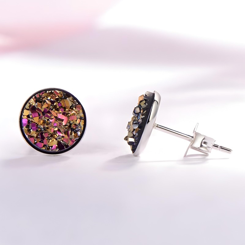 - MATERIAL: Sterling silver Gold Studs All metal parts are made of 925 sterling silver,hypoallergenic, nickel,lead and cadmium free,ensure safe wear for everyone,especially those with sensitive skin.Top embedded with high quality faux druzy, firmly embedded and not easily detached