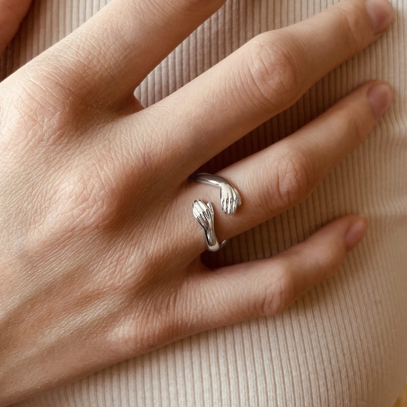 925 Sterling Silver Hugging Ring - Open Ring - Hug Ring - Adjustable Ring - Hug Ring - Gift Idea, Sterling silver, silver-plated base