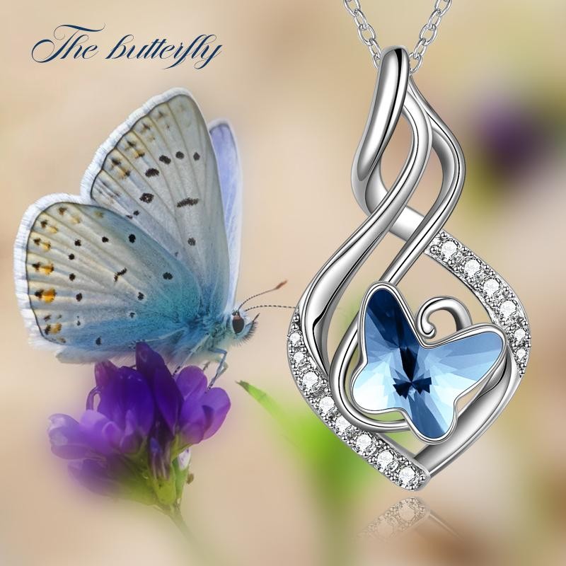 925 Sterling Silver Infinity Necklace Blue Crystal Butterfly Gift