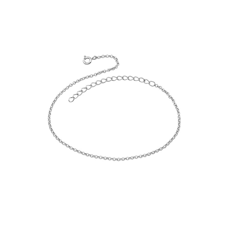 925 Sterling Silver Italian Ankle Bracelet Round Link For Womens Girls, Rhodium Plated Finishing Length 26 cm Includes Extension 5 cm & Thickness 1 mm, Gift Foot Anklet Jewelry For Her