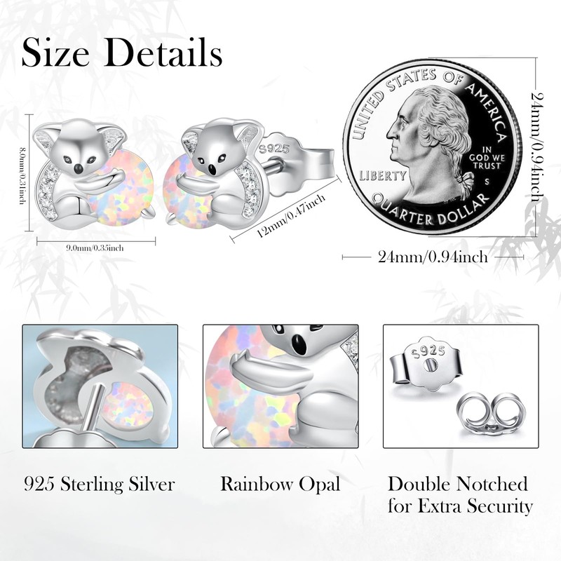 - 【SIZE】 The inner diameter of the silver animal stud earrings is 17 mm and weighs 4 grams. koala stud earrings made of sterling silver are very light and comfortable to wear for everyday wear. The ear stud is made of 925 sterling silver and is easy to open and close.