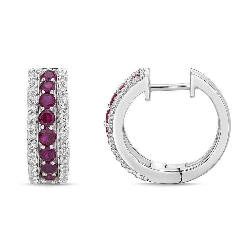 - STUNNING SPARKLE – Bring a smile to her face with these beautiful huggie earrings from the LeRose by Lexi and Rose Collection! Round brilliant cut lab grown stones in your choice of ruby, blue sapphire, or emerald are stacked in vertical columns between columns of lab grown white sapphires all in shared prong settings. The feminine 925 sterling silver earrings have hinged latch back closures for a comfortable evening of wear. These modern earrings will be a staple in her jewelry wardrobe.