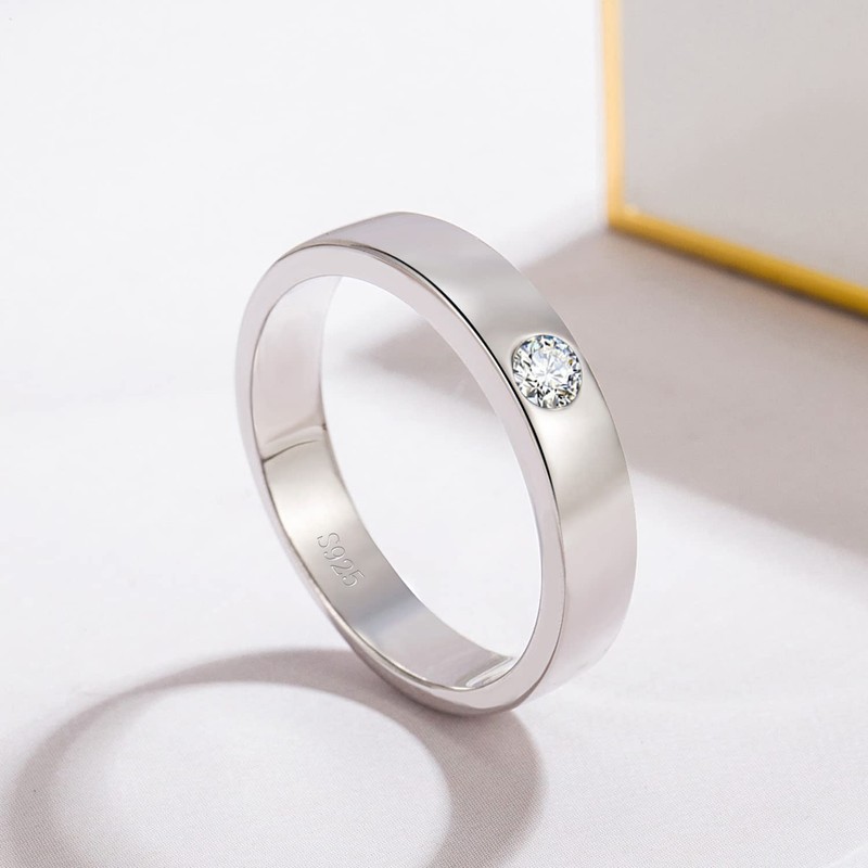 - Bring shimmering sophistication to your look with this handsome ring. The simple design features Smooth Plain Dome Comfort white cubic zirconia, set horizontally across the top of the ring in a sparkling plane. Polished shank complete the appeal of this stylish ring.not too thick, only the proper volume, It's the perfect Ring for everyday wear, whether it's casual jeans and a T-shirt or dress. Men & Women For fashion declarations, wear and overlay and stratify with other pieces.