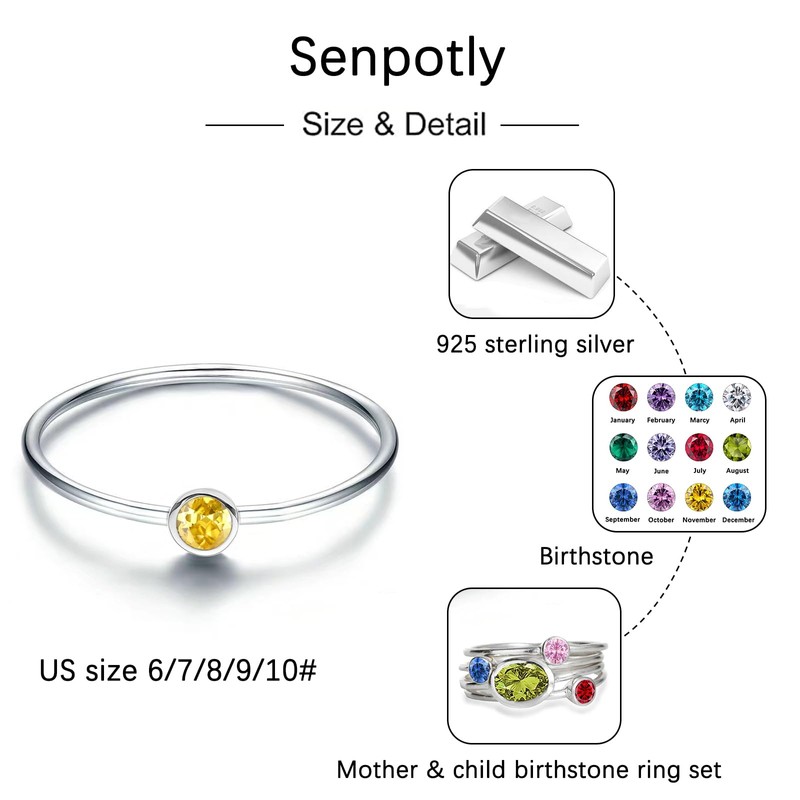 - Meaningful birthstone rings: You can choose the right ring for your needs, if you have a daughter and a son, you can choose two round birthstone rings and one oval birthstone ring to form a stack ring set based on the month in which you and your son and daughter were born.