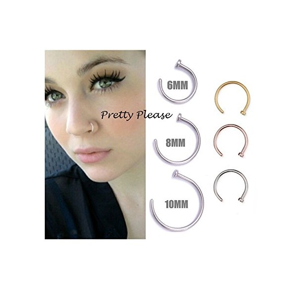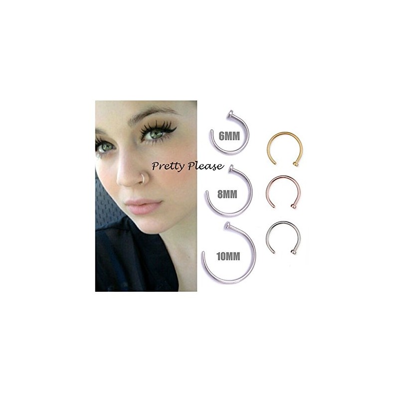 925 Sterling Silver Open Nose Ring Hoop 0.6mm Piercing (6mm, Gold)