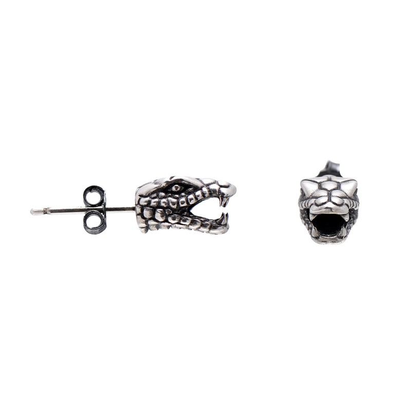 - The silver stud is crafted into a head of python snake, open mouth with sharp teeth, fierce and scary