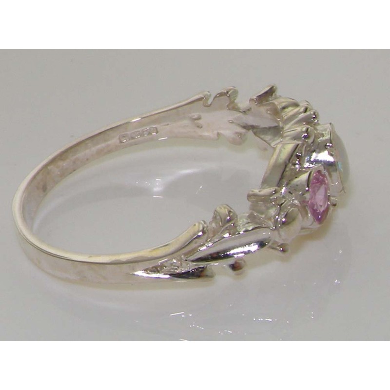 925 Sterling Silver Real Genuine Opal and Pink Tourmaline Womens Band Ring - Size 12
