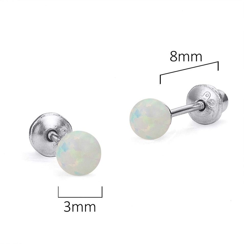 925 Sterling Silver Rhodium Plated 3mm Simulated Opal Screwback Baby Girls Earrings