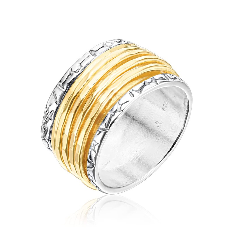 925 Sterling Silver Rotating Spinner Ring with 5 One Micron 14K Gold Plated Sterling Silver Hammered Spinner Rings - Hypoallergenic, Nickel & Lead-free - Artisan Handcrafted Designer Collection