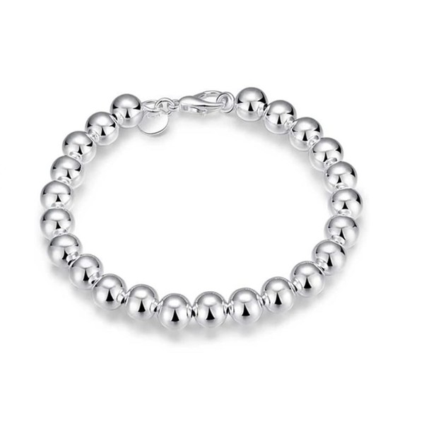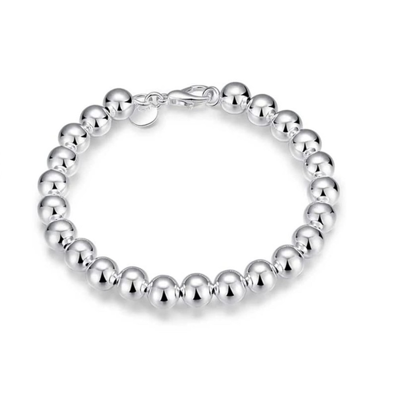 925 Sterling Silver Round Beads Bracelet, 8mm