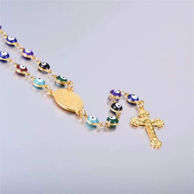 925 Sterling Silver Saint Benedict Necklace Evil Eye Beaded Rosary Necklace Women Link Chain 18K Yellow Gold Saint Benedict Medal Cross Necklace medalla de san benito de plata Jewelry Medals;