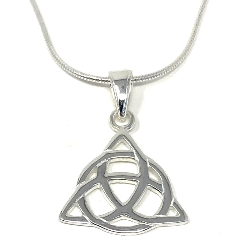 • Triquetra pendant on a sterling silver snake chain.
