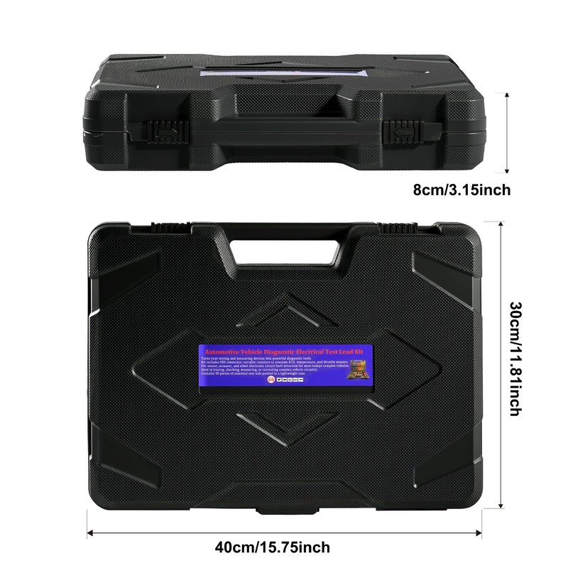 • 92PCS Comprehensive Test Kit: Multimeter Leads Kit Package includes 1 x carrying case, 72 x terminal, 2 x SRS connector, 2 x 1-to-2 connector, 4 x 1-to-1 connector, 2 x led stroboscope, 2 x standard probe, 4 x acicular probe, 2 x potentiometer, 2 x alligator clip