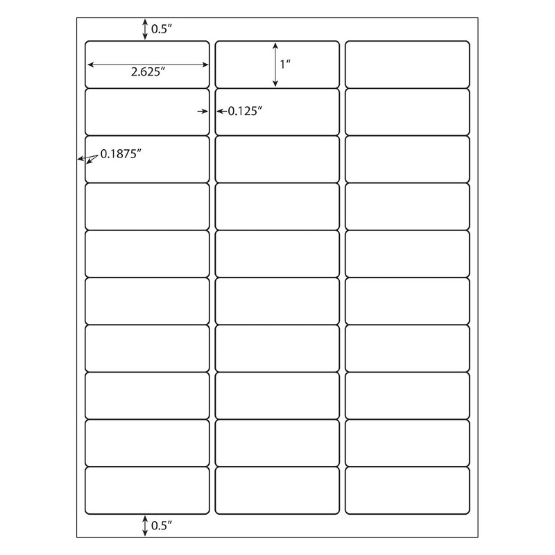 - label size: 1" x 2-5/8", sheet size: 8.5'' x 11''