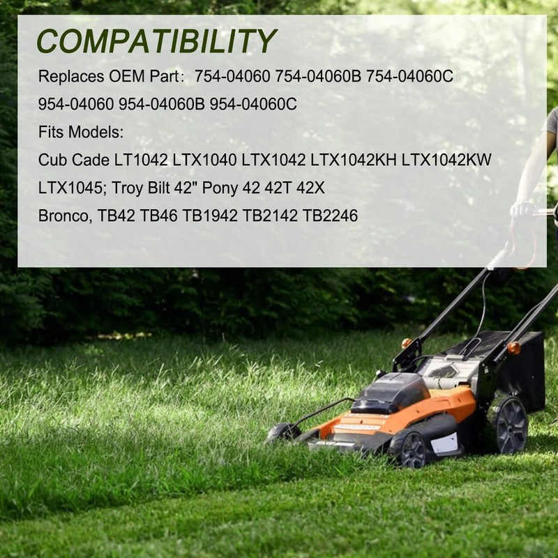 • Fit for Troy Bilt TB42, TB42 Hydro, Super Bronco, Bronco, Bronco 42 Auto, Pony 42X, Pony 42T, Pony, Horse 42 Hydro, TB1942, TB2142; MTD Gold 13AL795S004, 13AJ795G204, 13AJ795G004, 13AJ771G204, 13AJ771G004, 13AJ771S004