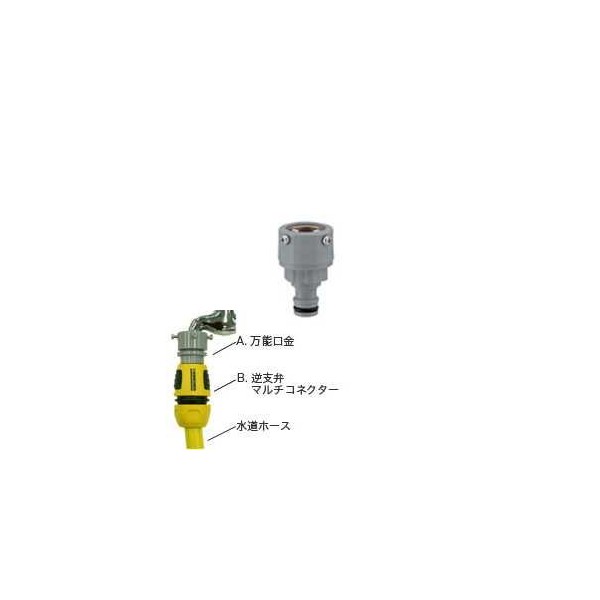 Manufacturer name: Kärcher Japan; Product Name: Universal Base (Large); JAN Code: 4515413005536; Connection Options for standing faucets (square type) and water hose; > 1. Place the green backing between the middle of the universal base of a A. 2. Insert A into the faucet and tighten 4 screws evenly with a screwdriver. After that, remove the green backing from the sandwich. 3. Connect B inverted valve multi-connector and water hose 4. Connects a universal A base and B inverted valve multi-connector. After connecting the water hose to the faucet, please make sure that there is no leakage.