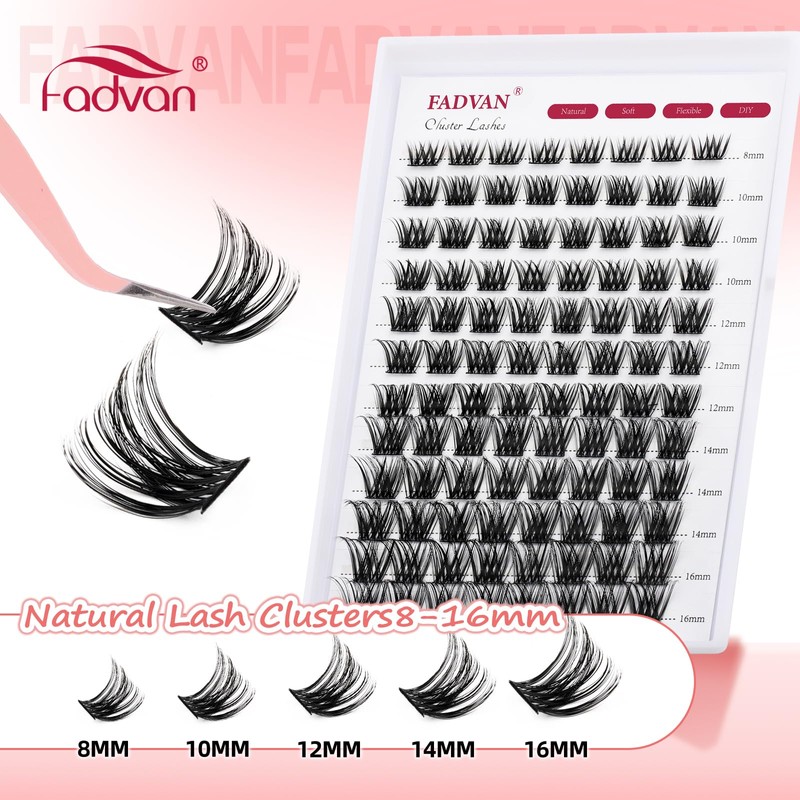 96 Clusters DIY Lash Extensions - D Curl 0.07mm 8-16mm Mixed Lengths, Natural Look Thin Band for Sensitive Eyes, Reusable Cluster Lashes (F29-0.07D)