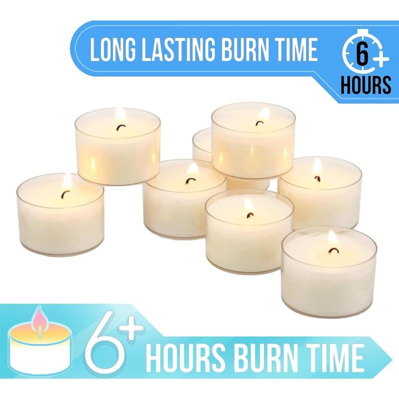 96 Count White Unscented Smokeless Long Burning Clear Cup Tea Light Candles with 6 to 7 Hour Burn Time - Size: 96 Pack