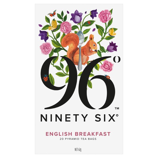 96° English Breakfast Tea - 20 Pyramid Tea Bags, Individually Wrapped, Full Bodied, Everyday, Biodegradable Plant-Based Bags