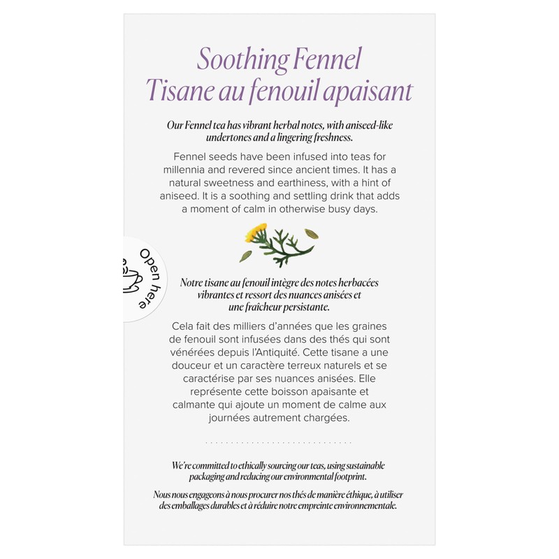 • FRESH - Each tea bag is sealed in a recyclable envelope so our Fennel tea is as fresh as the first day it was made and your cup of tea delivers joy every time.
