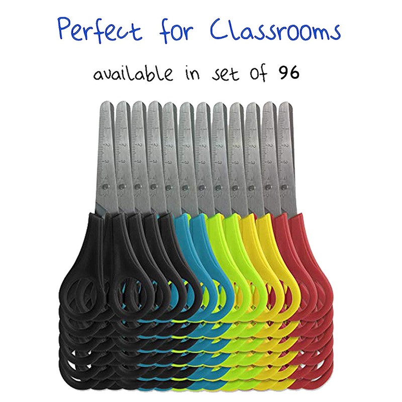 96 Pack Scissors 5 Inch Blunt Tip Kids Safety, Bulk Pack of Scissors Perfect for School & Craft Projects
