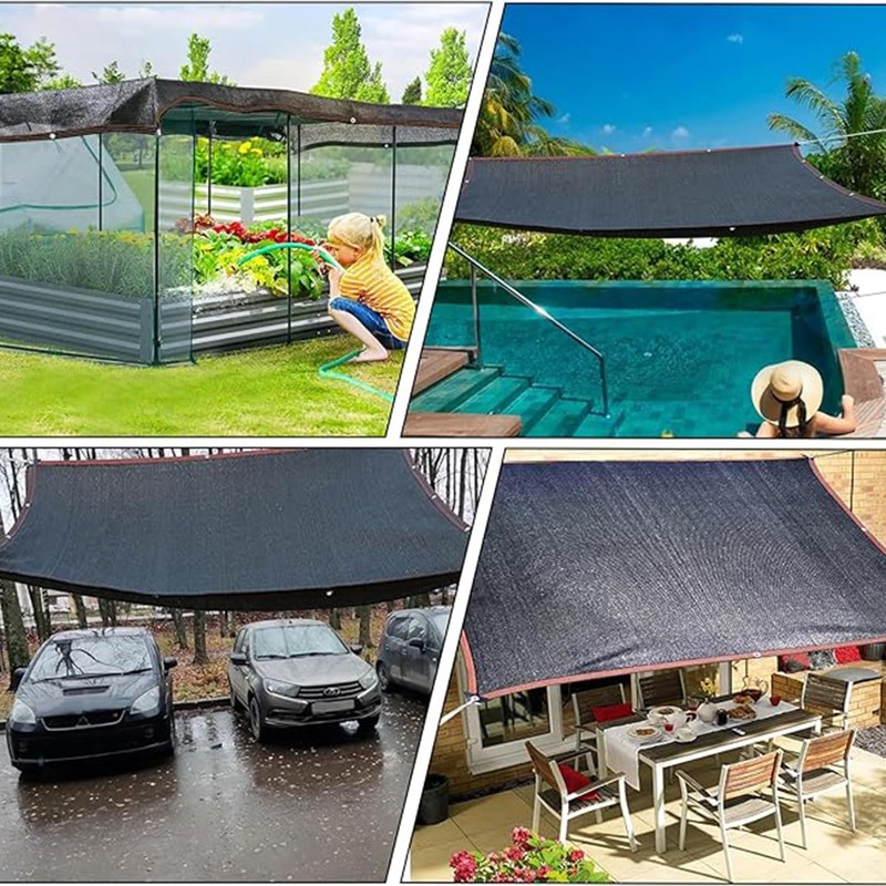 - Multiple stable holes: the hole positions can be attached in multiple directions, windproof and rainproof. Encrypted and thickened mesh surface added with anti-pull agent is stronger toughness, tensile strength and easy folding. Shade nets are suitable for outdoor willows, greenhouses, construction sites, garage roofs, driveways, garden.