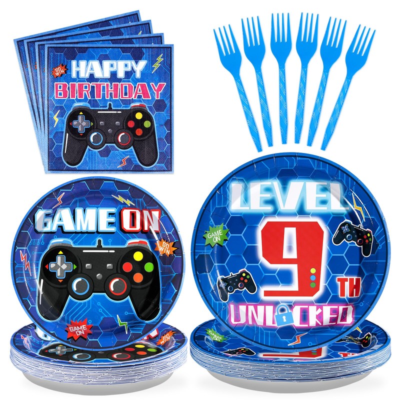 - 【9th Game Tableware Set】Hey gamers! Get ready to level up your birthday party with our video game party supplies! 96-piece tableware set includes 24 9-inch game dinner plates, 24 7-inch game dessert plates, 24 game napkins and 24 forks for 24 gamers, definitely a win!