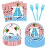 96Pcs Red and Blue Stripes Party Plates, Cartoon Window Party Decorations Supplies for Birthday Baby Shower Party Disposable Tableware Set,Serves 24 Guests