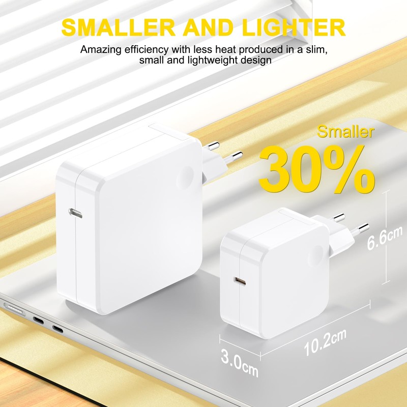 - 【GaN Technologie】Dieses 96W 100w charger verwendet GaN-Technologie mit guter Wärmeableitungsfunktion, ist kompakt und leicht zu tragen, was eine stabilere und sicherere Ladeumgebung für Ihre Geräte bieten kann. UBS C netzteil 100w
