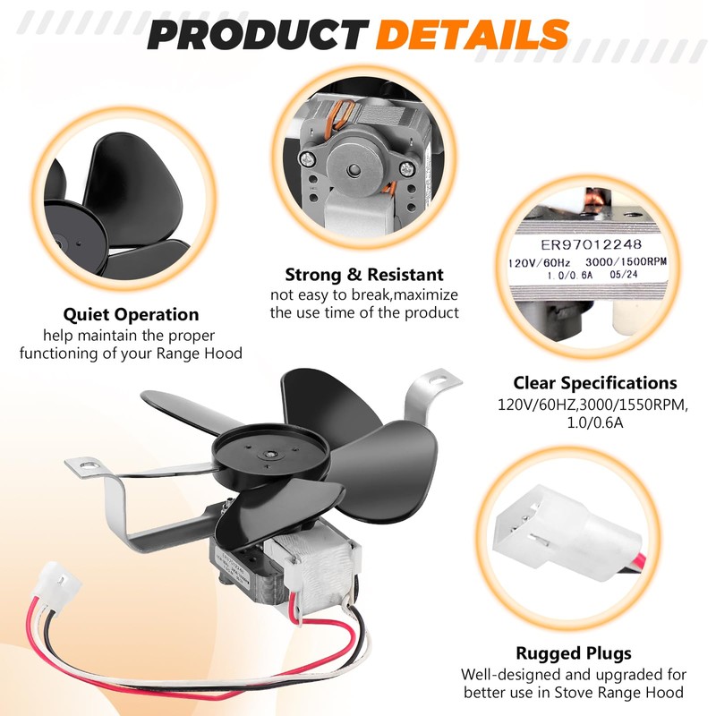 - 365 DAYS GUARANTEE: Risk-free shopping,Blutoget 97012248 S97012248 is made of premium quality material, supports 365 DAYS after-sales service. We promise to ensure your absolute satisfaction with every purchase. If you have any quality problem about this Broan Replacement Range Hood Fan Motor and Fan during use period, please contact customer service in time. We will try our best to solve the problem. Customer satisfaction is our tireless pursuit