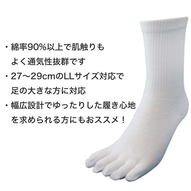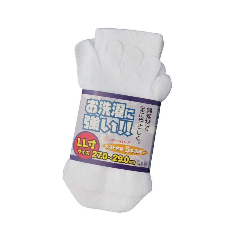 - Made in Japan, 3 Pairs of Five Finger Socks, Quality: Cotton (nylon core thread), Color: White, Size: 10.6 - 11.4 inches (27 - 29 cm)