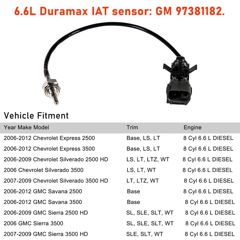 - REPLACE OEM -- 6.6L Duramax IAT sensor: GM 97381182.
