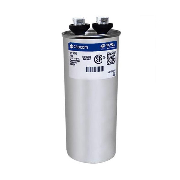 97F9645 45 uf MFD 440 Volt VAC - Replacement Round Run Capacitor by CAPCOM