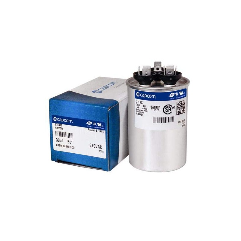 97F9833 30 + 5 uf MFD 370 Volt VAC - Replacement Round Run Capacitor by CAPCOM
