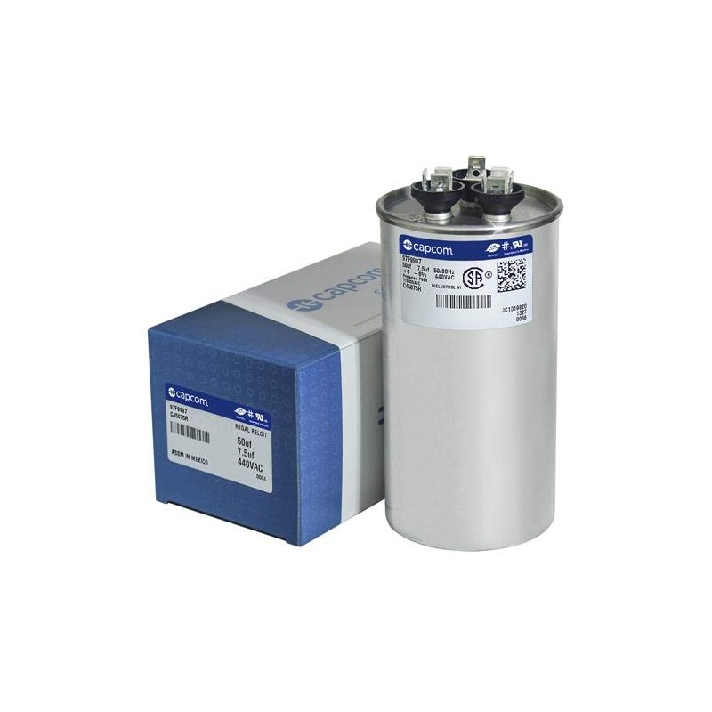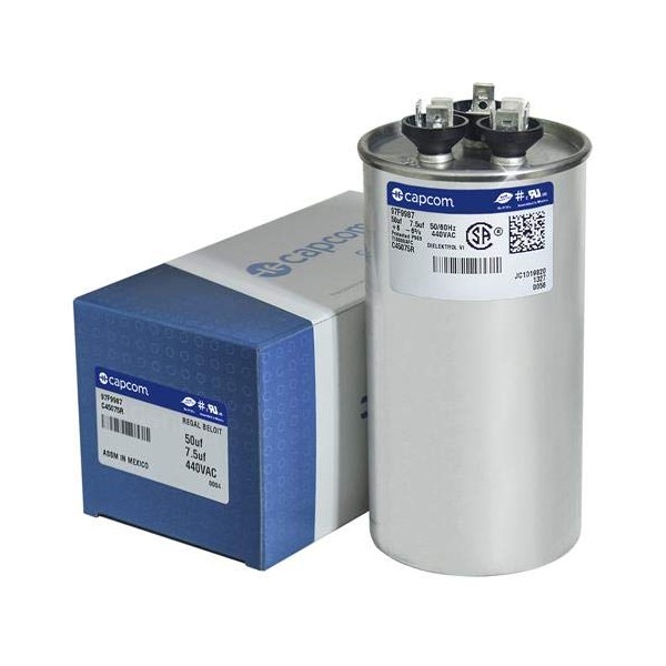 97F9987 50 + 7.5 uf MFD 440 Volt VAC - GE Genteq Replacement Round Run Capacitor by Capcom