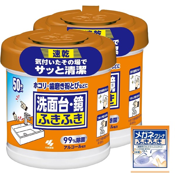 【まとめ買い】洗面台 鏡ふきふき 速乾 気づいたその場でサッと清潔 99%除菌・アルコール処方 50枚入 本体 × 2個 小林製薬 おまけ付