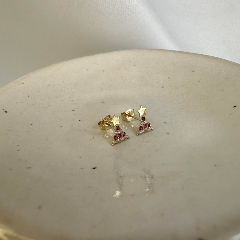 9ct Gold Clear CZ Crystal Ruby Red Christmas Tree Stud Earrings