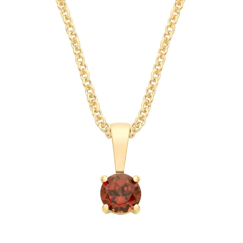 9ct Yellow Gold Natural Garnet Round Solitaire Pendant January Birthstone + 18" Chain Necklace