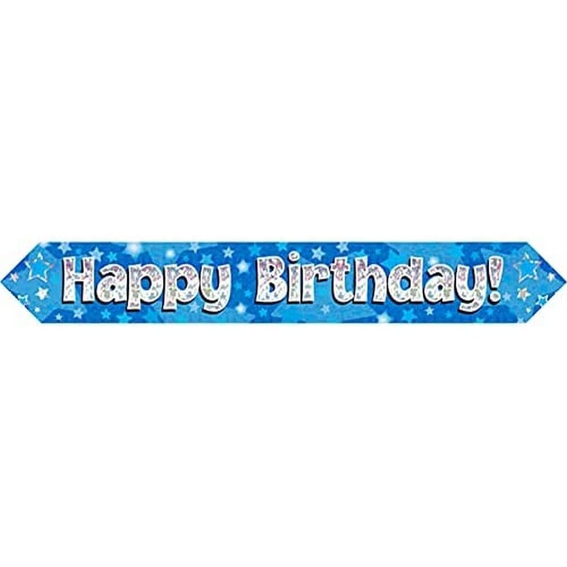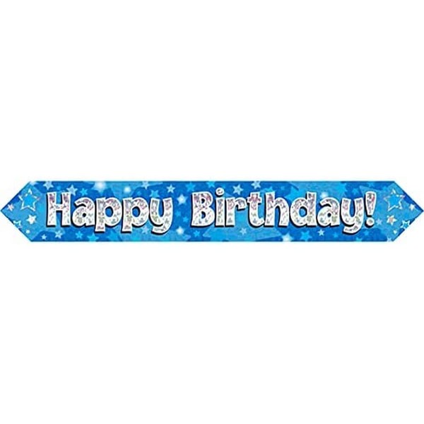 9ft Banner Happy Birthday Blue Foil Holographic Banner