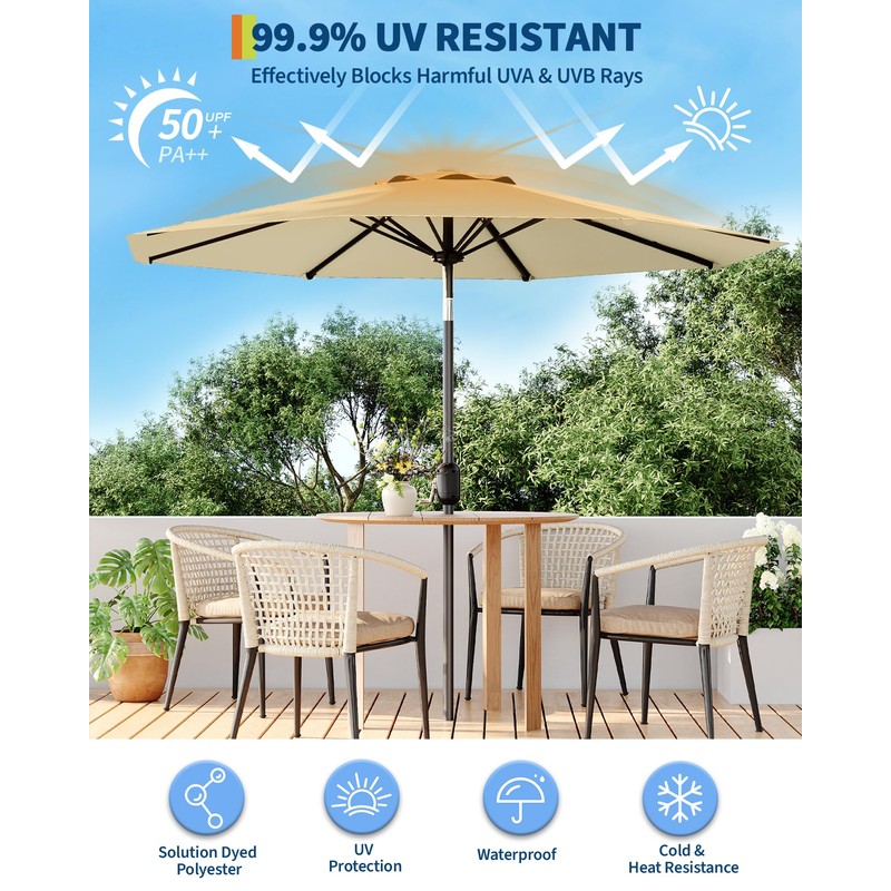 9FT Outdoor Patio Umbrella, Outdoor Table Umbrella, Market Umbrella With Push Button Tilt and Crank, 8 Sturdy Ribs UV Protection Waterproof for Garden, Deck, Backyard, Pool, Beige