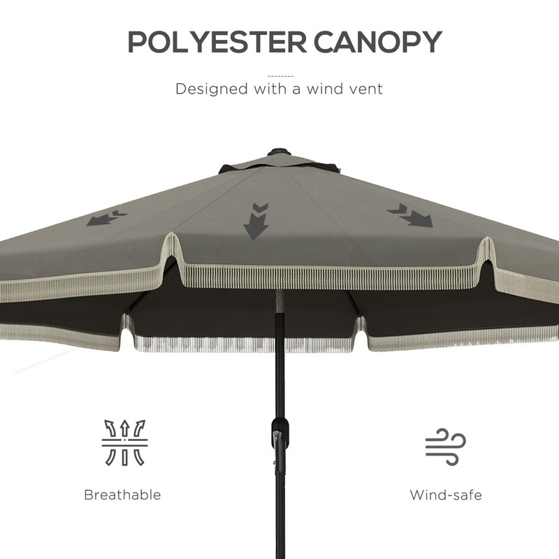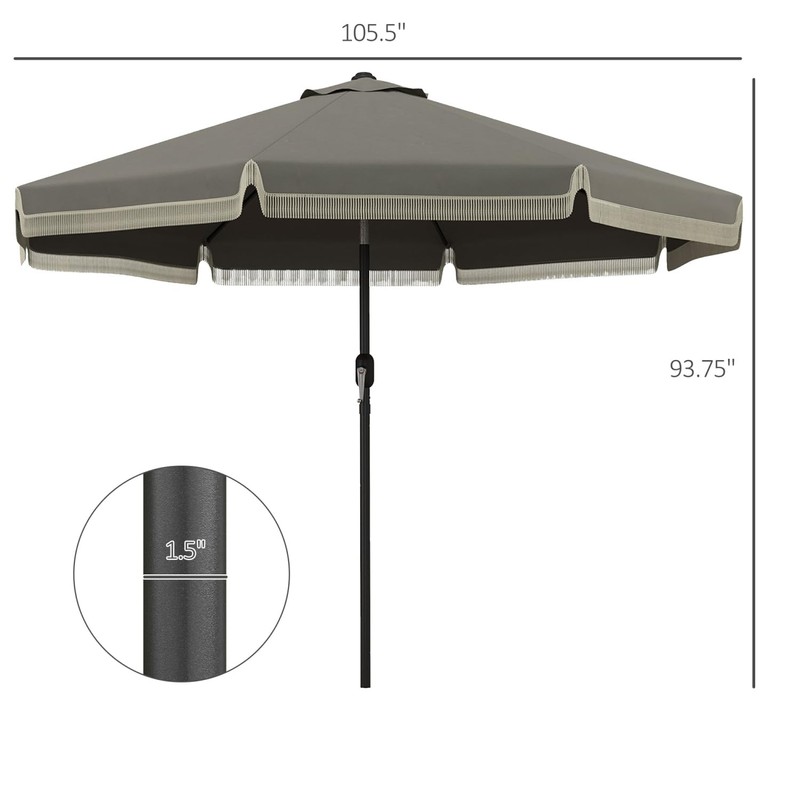 9Ft Patio Umbrella - Dark Gray, with Push Button Tilt & Crank, 8 Ribs, Ruffled Top, for Market Table