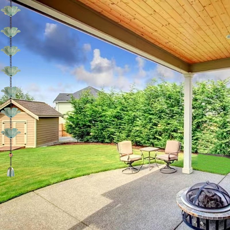 - Multi-functional :Our rain chain can not only effectively replace the traditional downpipe to help guide rainwater to the designated area, which contributes to the rational use of water resources, but can also be used as a decorative item to enhance the aesthetics of the balcony or the environment outside the house. Whether it is hung on the patio, balcony, or porch, it can become a bright landscape.