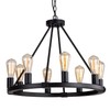 9MMML 23.6" 8 Lights Wagon Wheel Chandelier,Black Metal Round Industrial Vintage Kitchen Island Pendant Light for Living Dining Room Foyer Entryway,Height Adjustable,E26.
