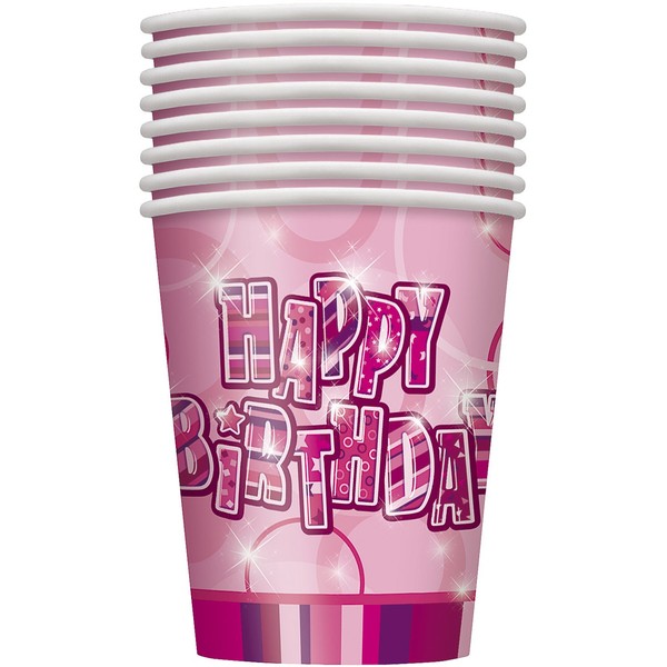 9oz Glitz Pink Birthday Paper Cups, Pack of 8