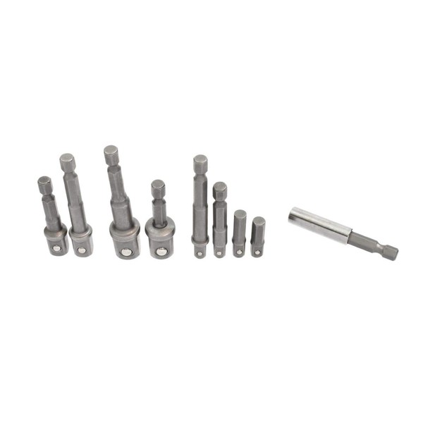 9pc Socket Adapter Drill Bit Set for Power Drive Tools Hex Shank 1/4 3/8 1/2