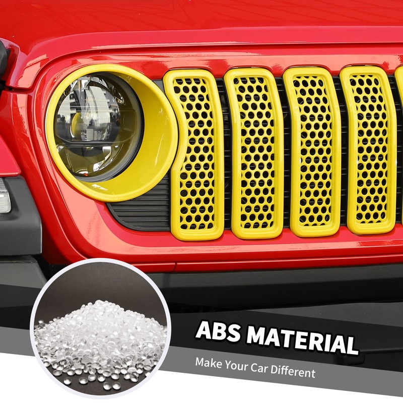 9PCS Headlight Cover & Front Grill Mesh Inserts Compatible with Jeep Wrangler JL JLU 2024+, NOT FIT JL Sport/Sport S (Yellow)