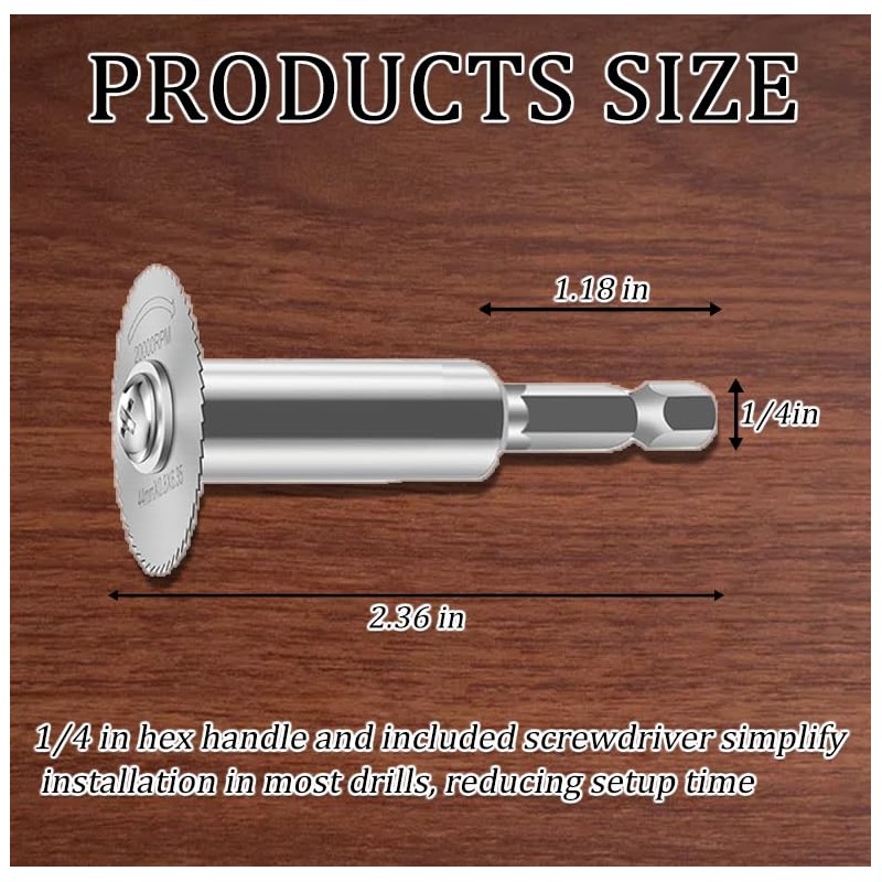 - INSTALLATION: 1/4" Hex Handle & Included Screwdriver Simplify Drill Compatibility, No More Fumbling with Tools The kit features a 1/4" hexagonal handle and precision screws for secure installation in most drills. A screwdriver is included for quick blade changes, saving time during multi-task projects. Whether you're working on wood, plastic, or thin metals, the universal fit ensures seamless integration with standard power tools, reducing setup delays