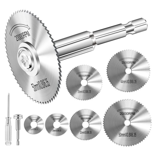 - DURABILITY: Nickel-Plated Carbon Steel Shaft + HSS Blades Resist Wear and Corrosion, No More Replacing Dull Tools Mid-Project Crafted with heavy-duty carbon steel and nickel plating, these circular saw blades deliver exceptional durability for long-term use. The high-speed steel (HSS) construction ensures sharpness retention even when cutting tough materials like soft metals, PVC, and fiberglass. Designed to withstand vibrations and frequent handling, this kit eliminates the frustration of dull or damaged blades during critical DIY tasks