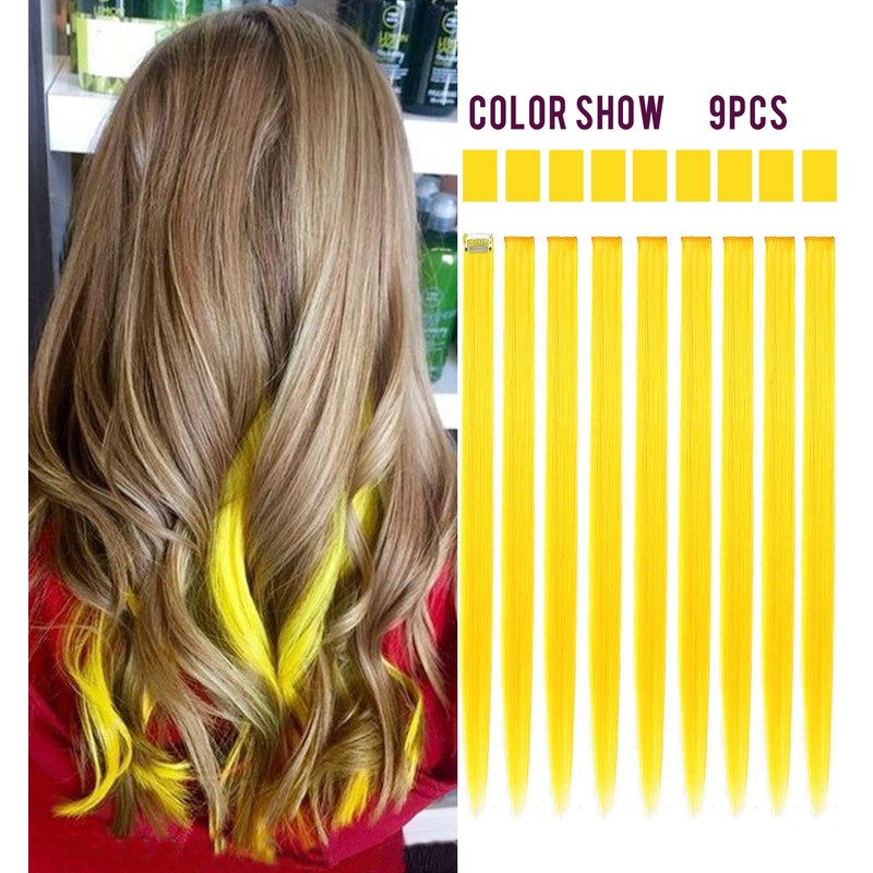 9PCS Princess Party Highlight Yellow Hairpieces Colored Hair Extensions Clip in/On for Girls and Dolls Kids Wig Pieces Yellow Hair Accessories (Yellow)