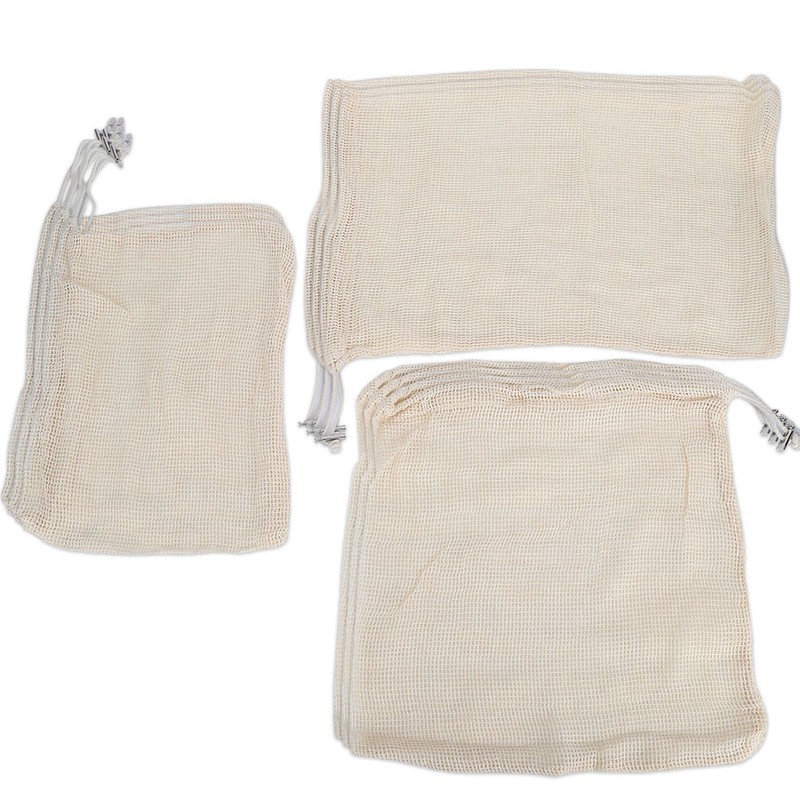 9Pcs Reusable Washable Cotton Mesh Storage Bags Drawstring Bag for Toys Vegetable Snacks
